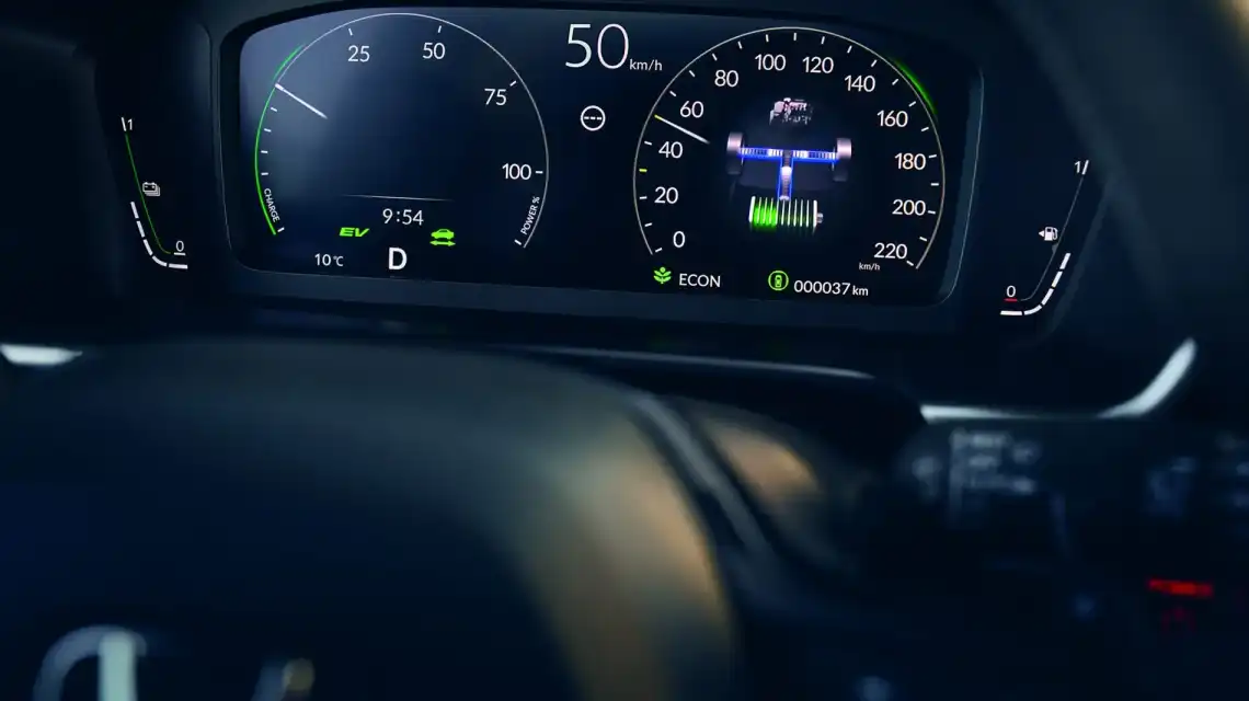 Гібридна система i-MMD дозволяє перемикатися між режимами: повністю електричний, бензиновий або змішаний, щоб оптимізувати витрати палива та динаміку.